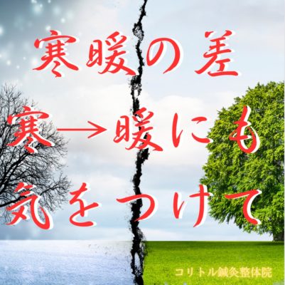 【寒暖の寒→暖の時も気をつけて】大阪 島本町 頭痛改善 コリトル鍼灸整体院